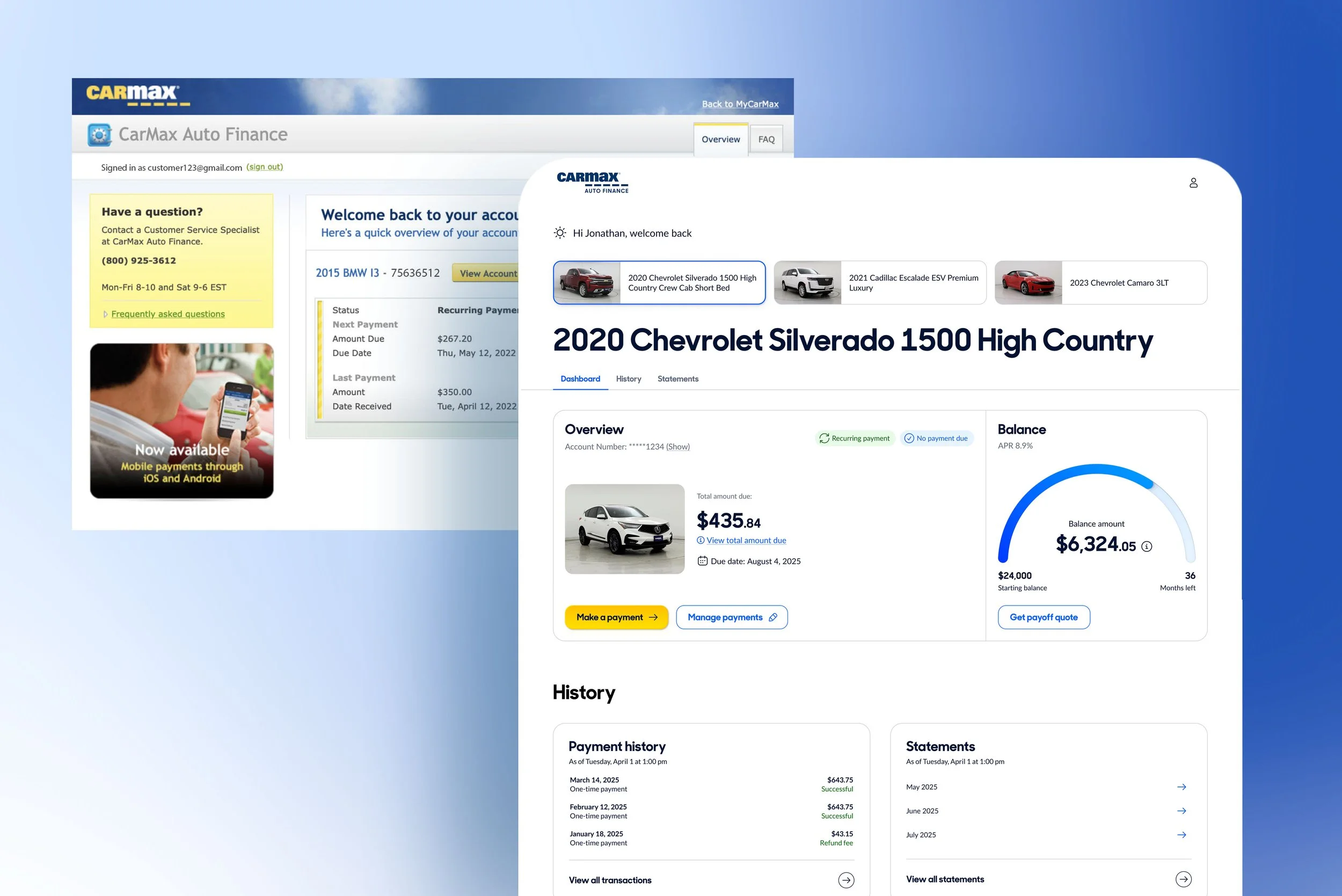 As part of a company-wide user experience audit, CarMax identified a strategic need to modernize the CarMax Auto Finance website to better support customer payment experiences. The online account management experience had not been meaningfully updated since 2014.